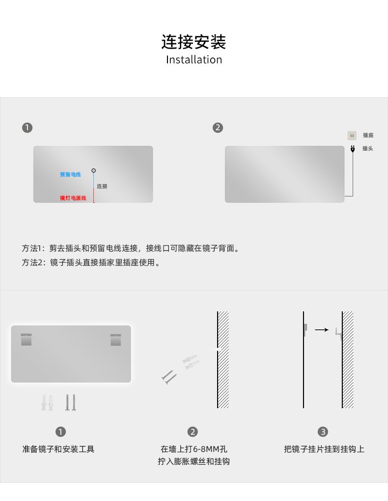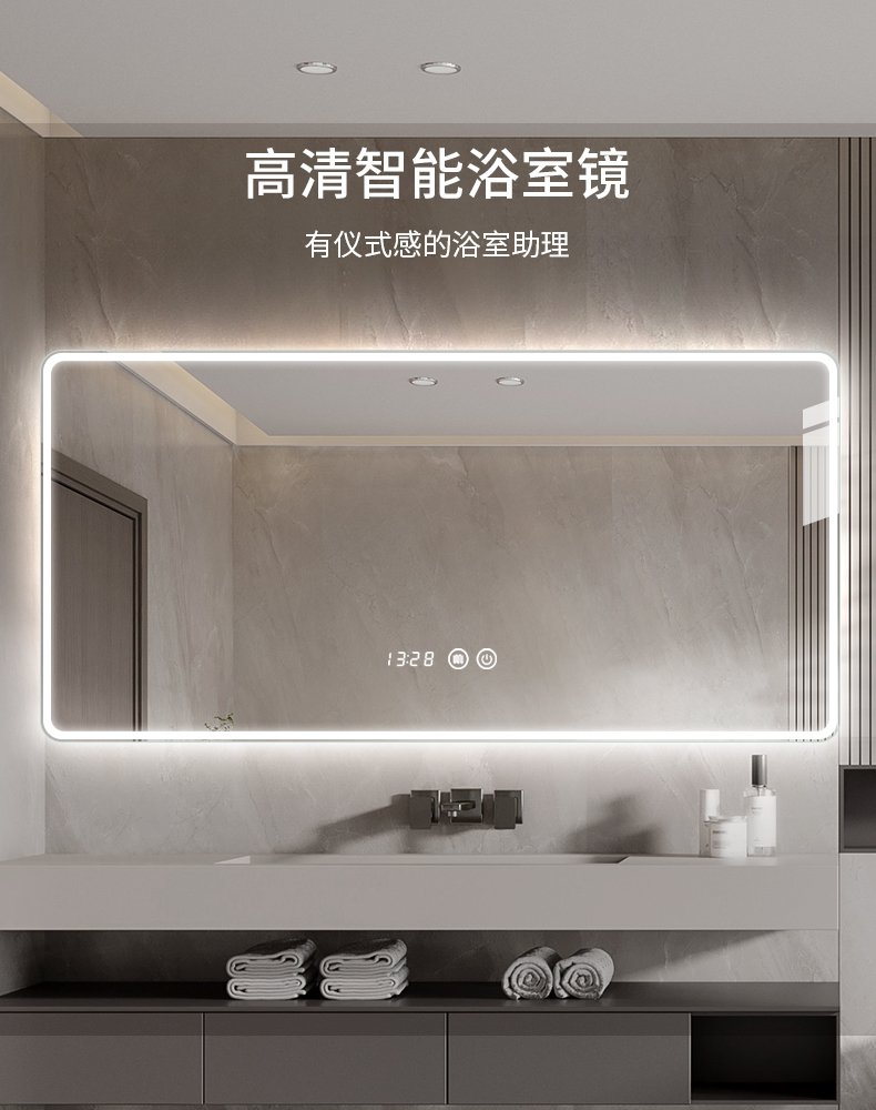 Square bathroom mirror without sand – blasting, with hand – swept induction and outer sand – blasting