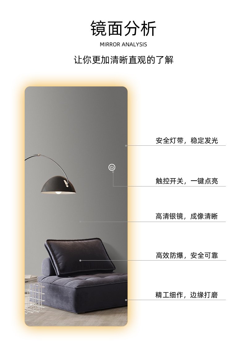 Dressing Mirror with Lights Nonblasted Chamfered Bathroom Mirror - Image 4