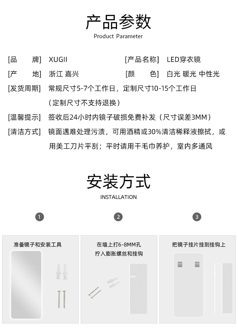frameless dressing mirror