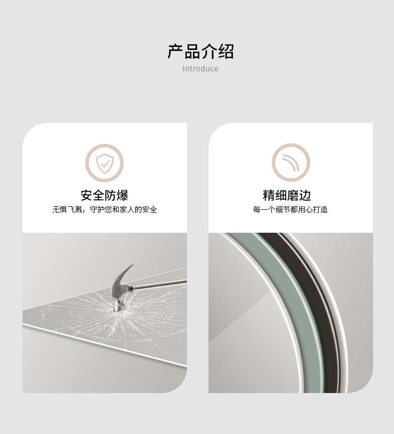 Dressing mirror with sandblasted chamfer