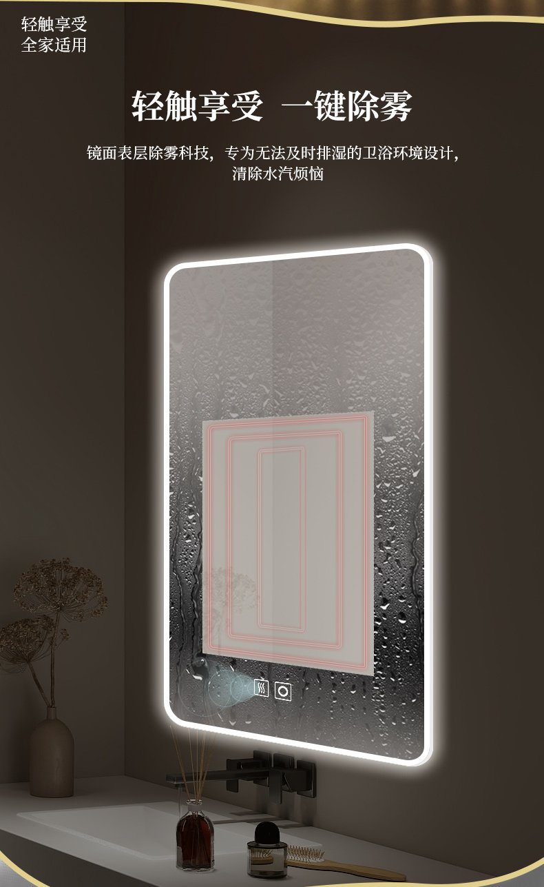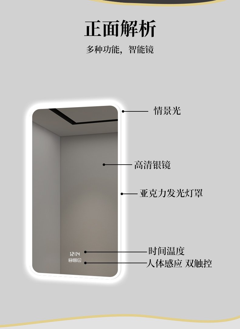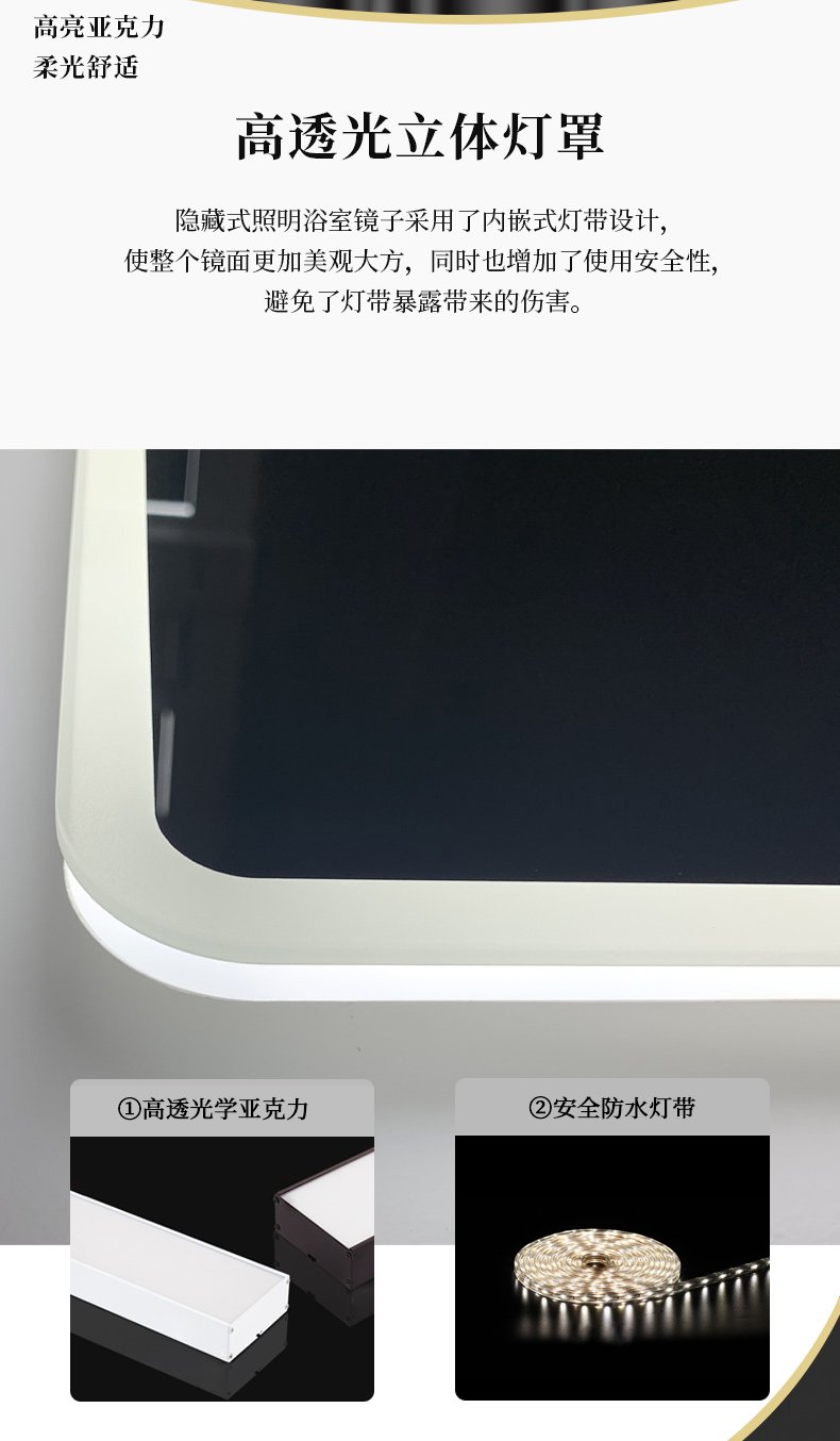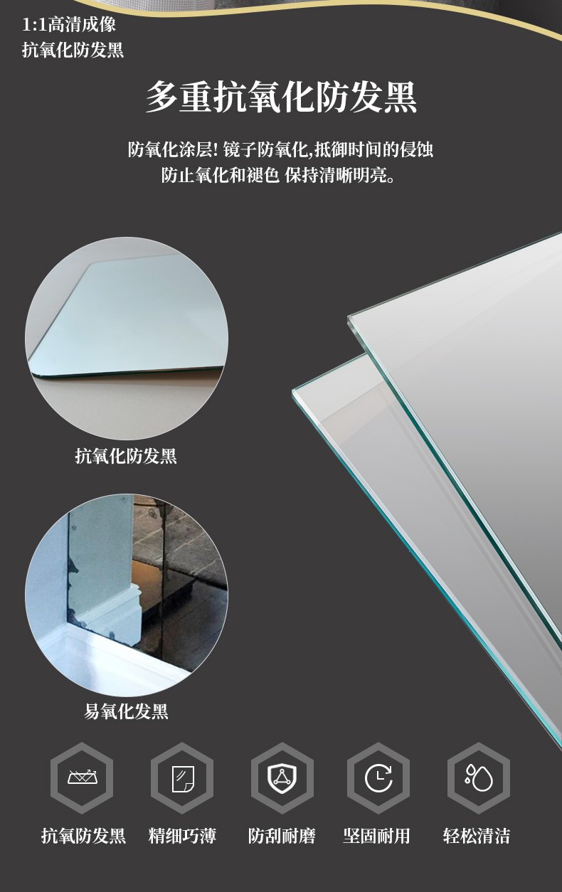 Square bathroom mirror without sandblasting, vertically hung with acrylic outer frame