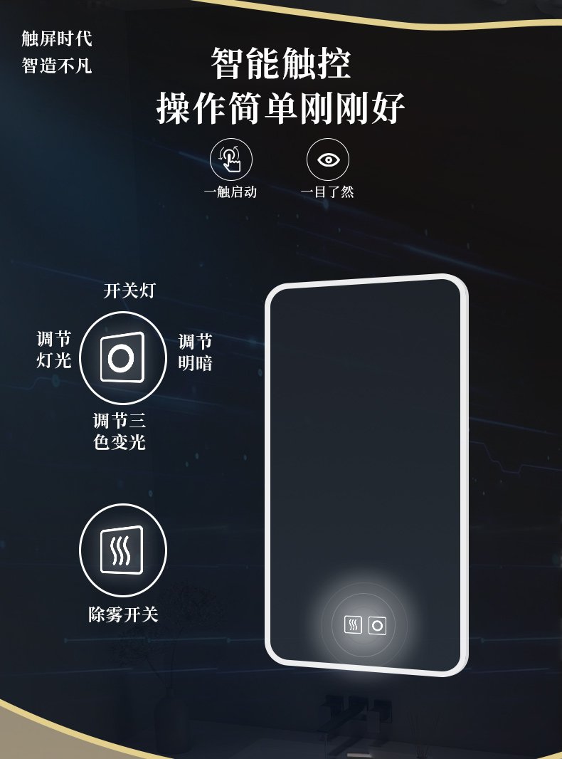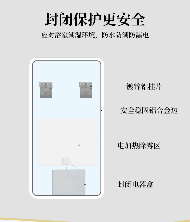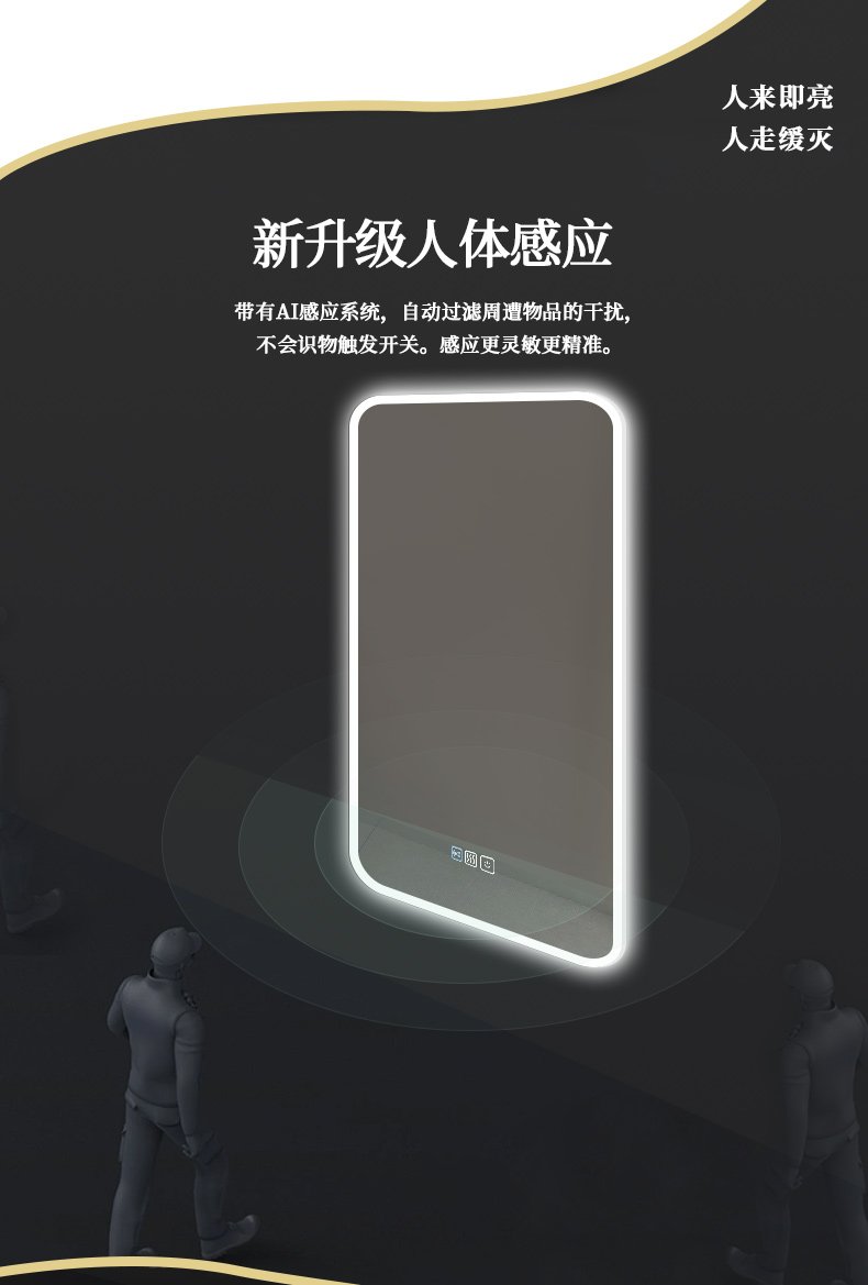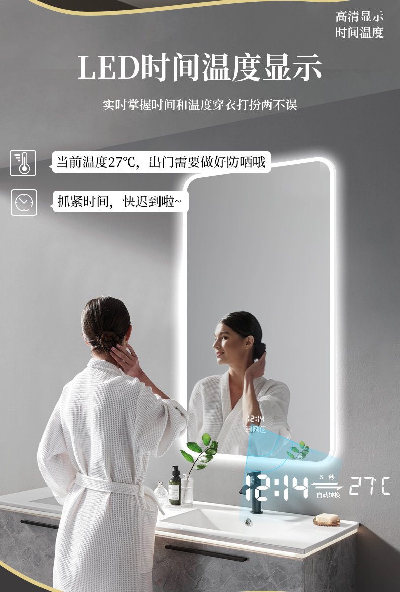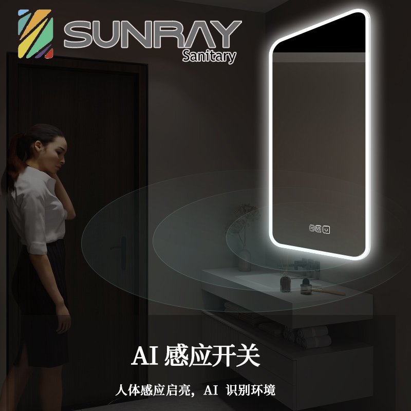 Square bathroom mirror without sandblasting, vertically hung with acrylic outer frame