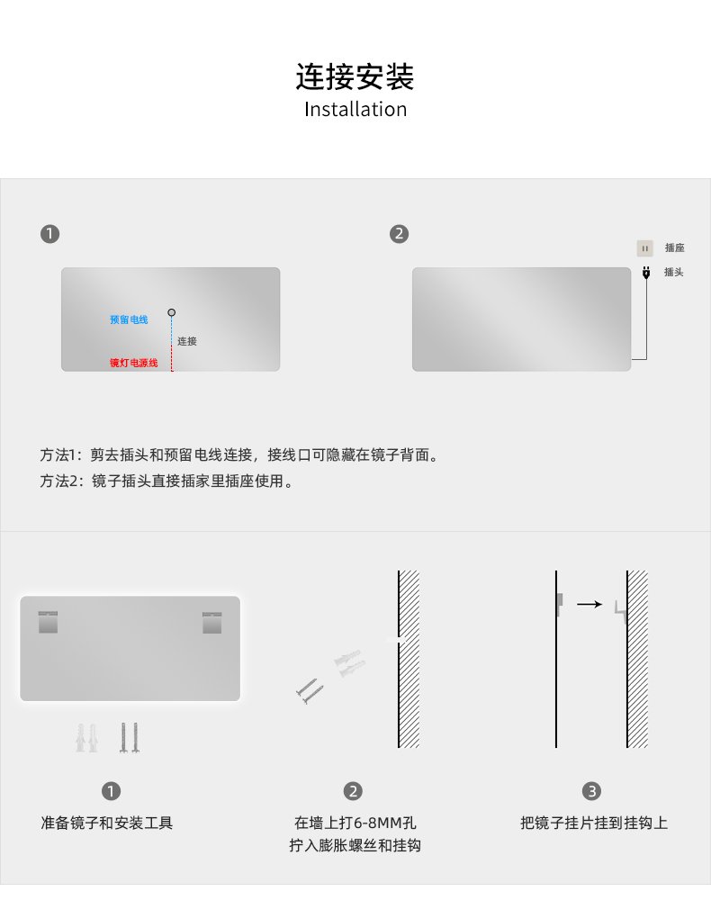 Square bathroom mirror without sandblasting, vertically hung with acrylic outer frame
