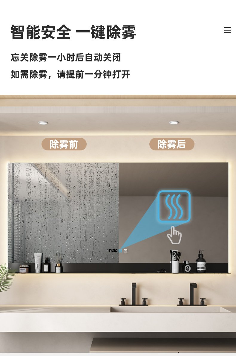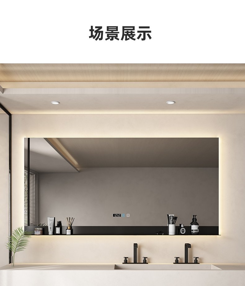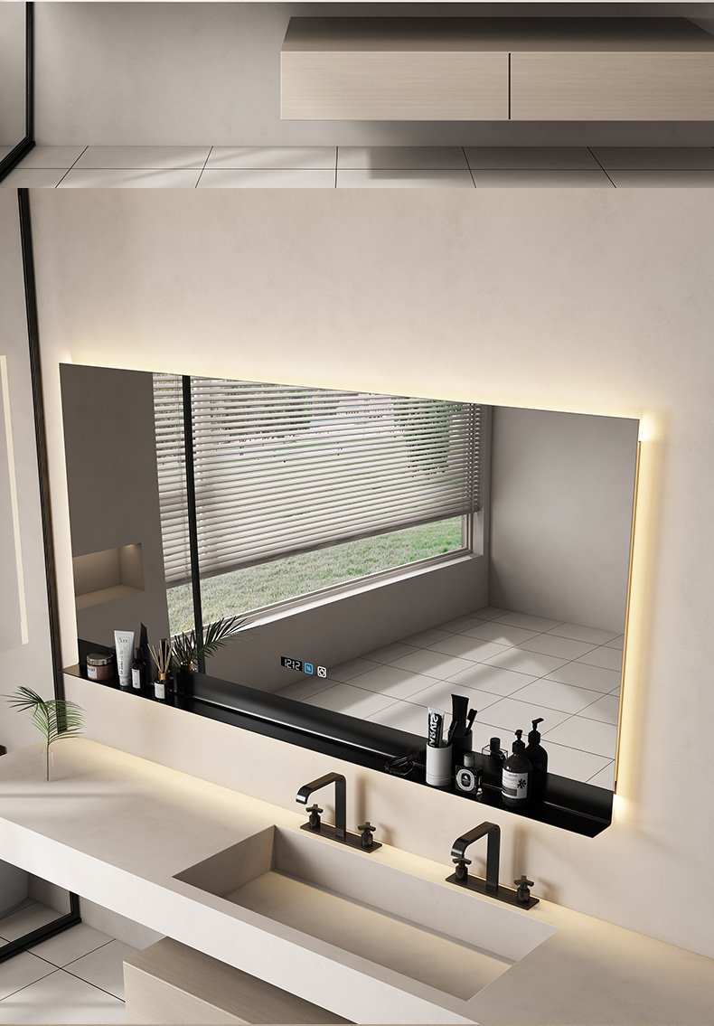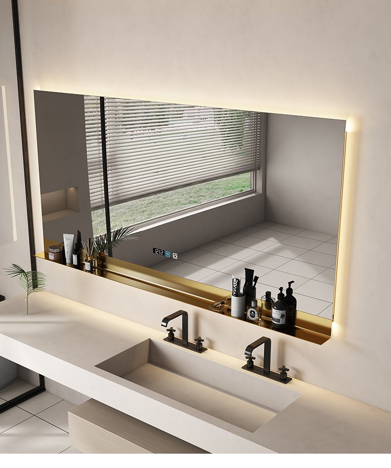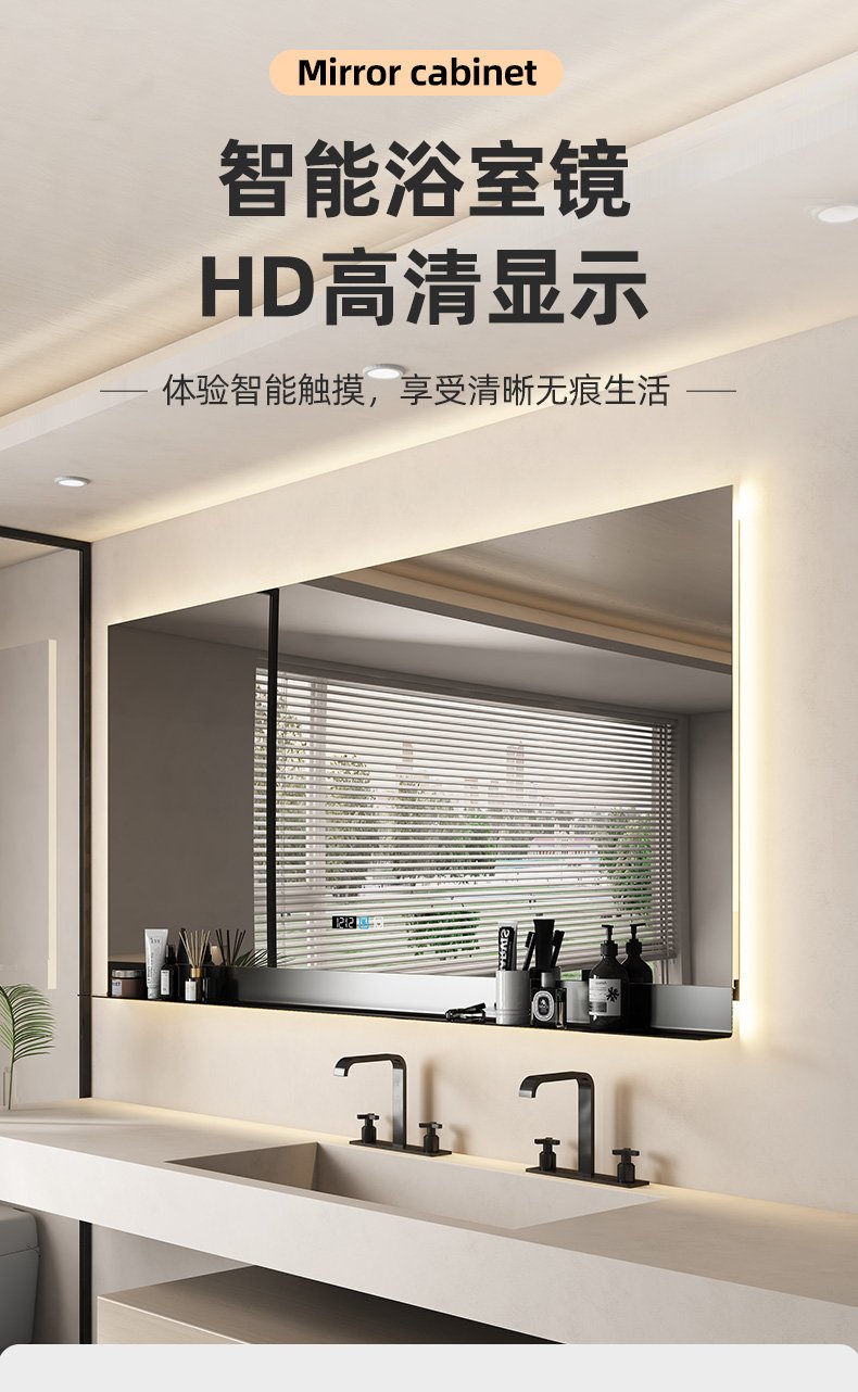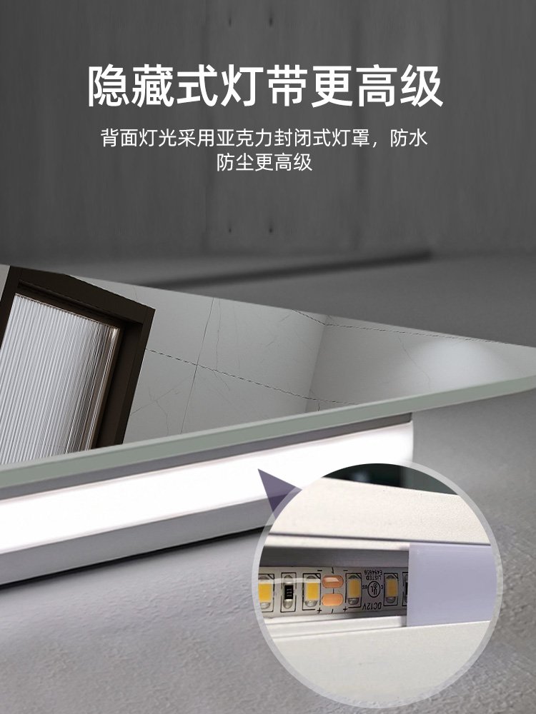 Square bathroom mirror without sand – blasting, with hand – swept induction and outer sand – blasting