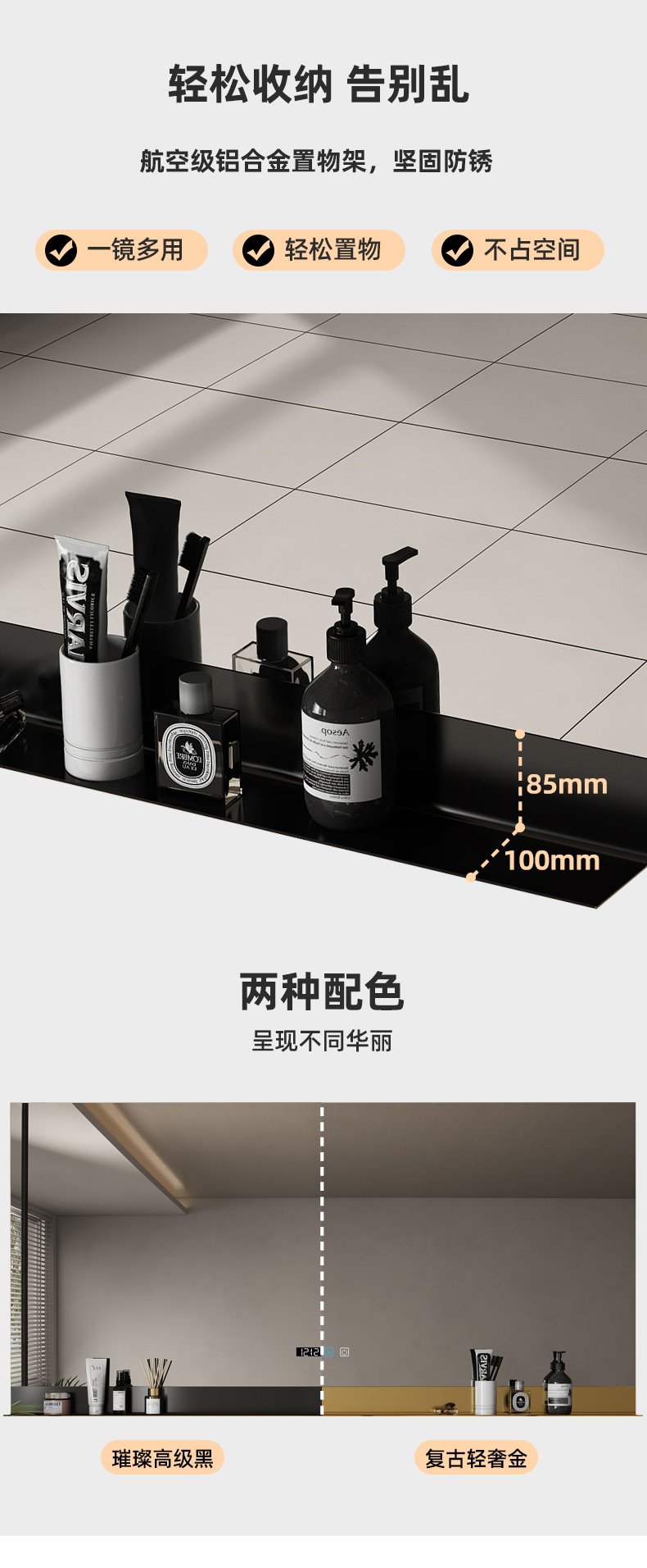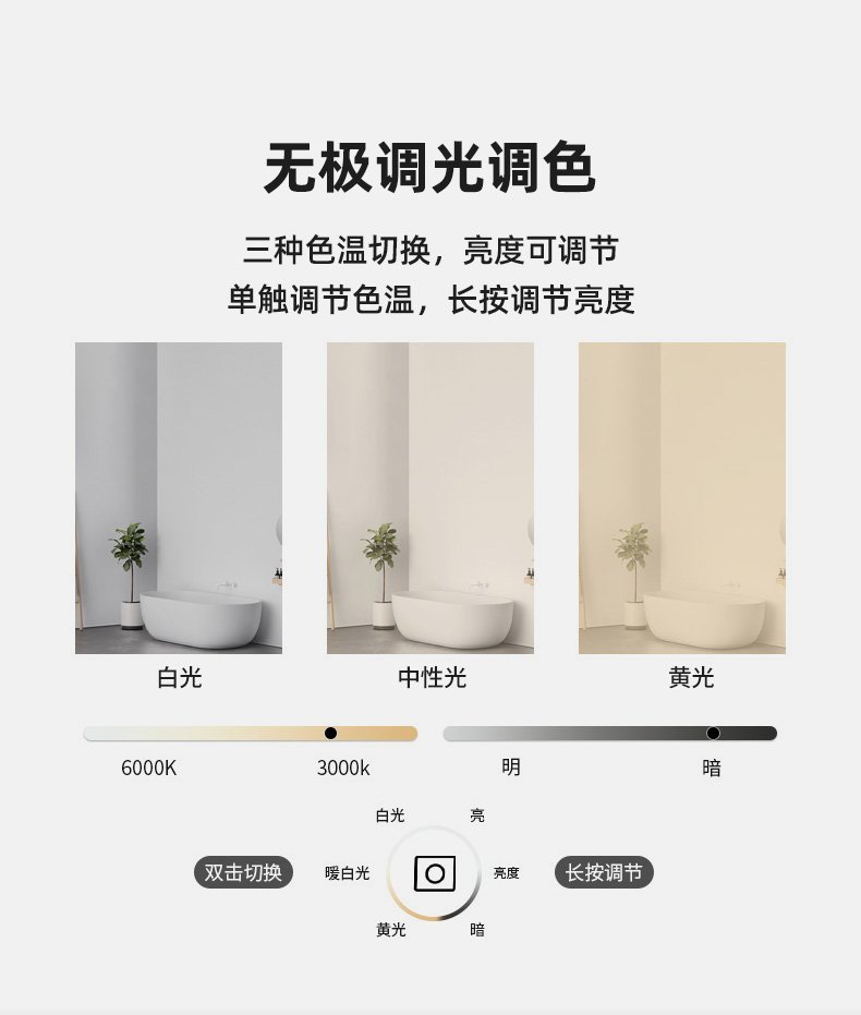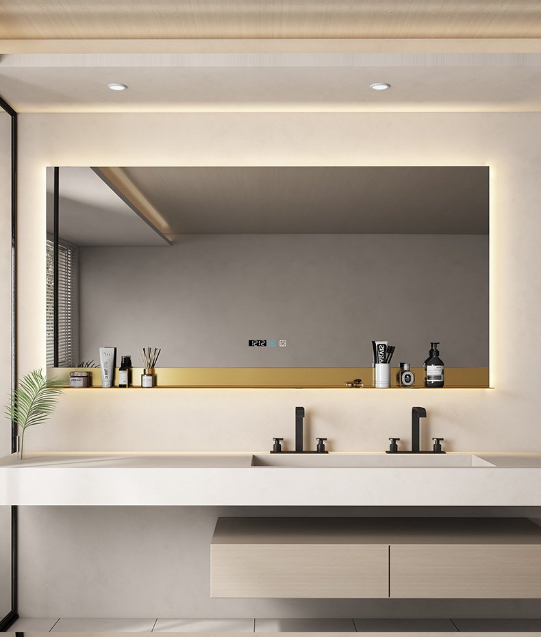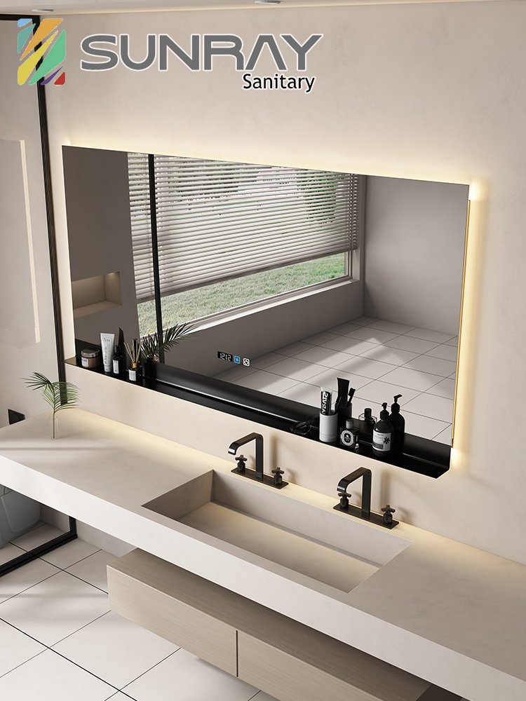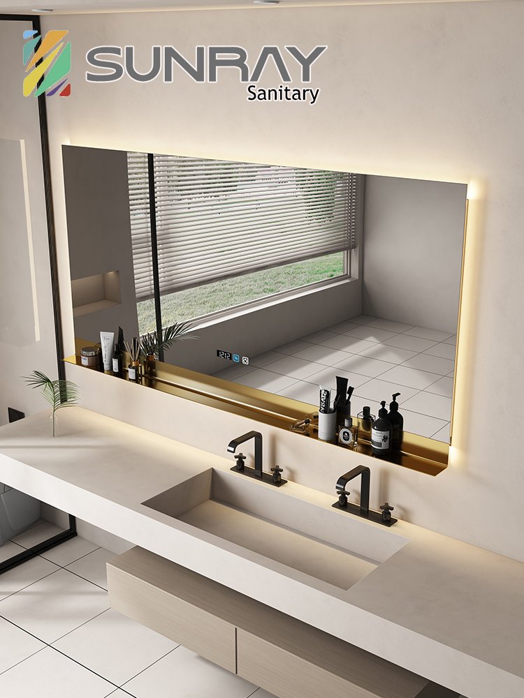 Square bathroom mirror without sand – blasting, with hand – swept induction and outer sand – blasting