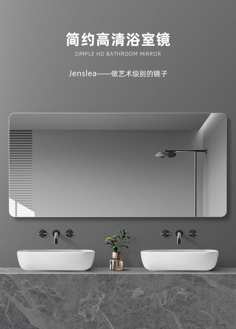 Home Rectangle & Square Horizontal bathroom mirror with rounded corners and no light