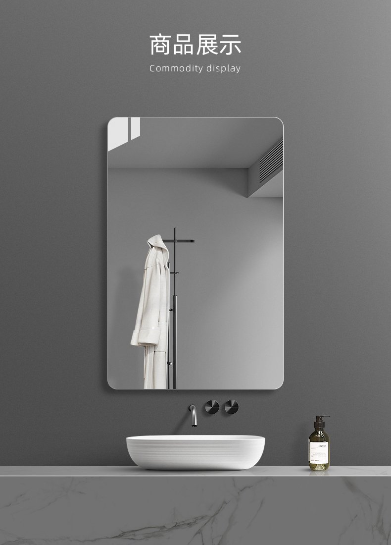 Horizontal bathroom mirror with rounded corners and no light - Image 5